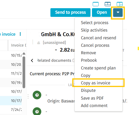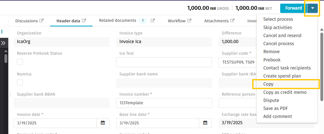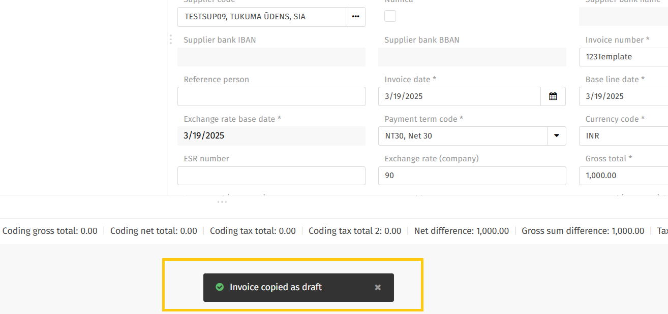 - Once you click Copy, the selected document will be duplicated. After the copy action is completed, users are automatically redirected to the newly created invoice, which contains all relevant data transferred from the original document.