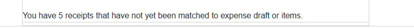Sometimes users will receive an email stating that they have receipt(s) that have not been matched to an expense draft or items (please see below).