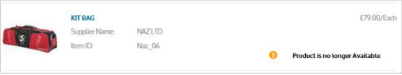 Supplier temporarily flags the item unavailable. Items that are unavailable cannot be added, the shopping basket and will be displayed as shown below: