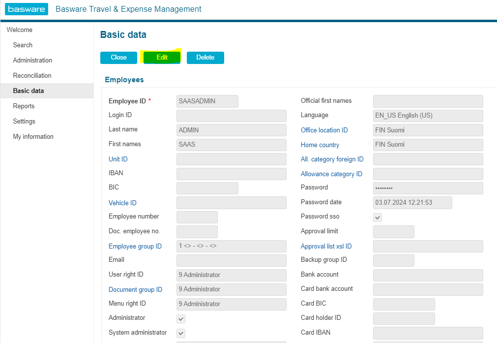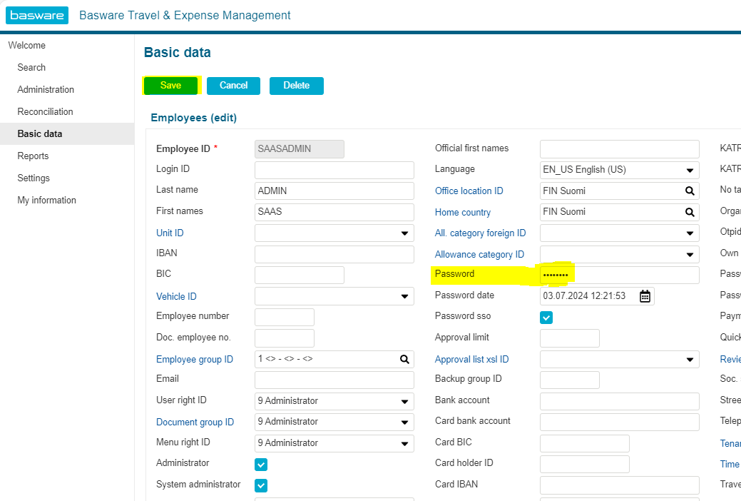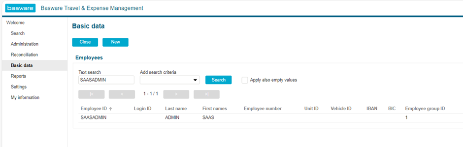- Enter user's name in the “Text search” field and search the user e.g. saasadmin.