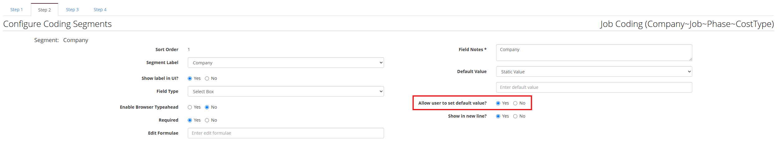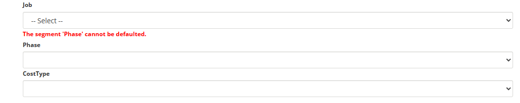 It will bring them to their profile, which allows them to set the defaults that are allowed. In this scenario, the Job segment is allowed to be defaulted, whereas Phase is not (it will also tell you which ones are not allowed). Please see below.