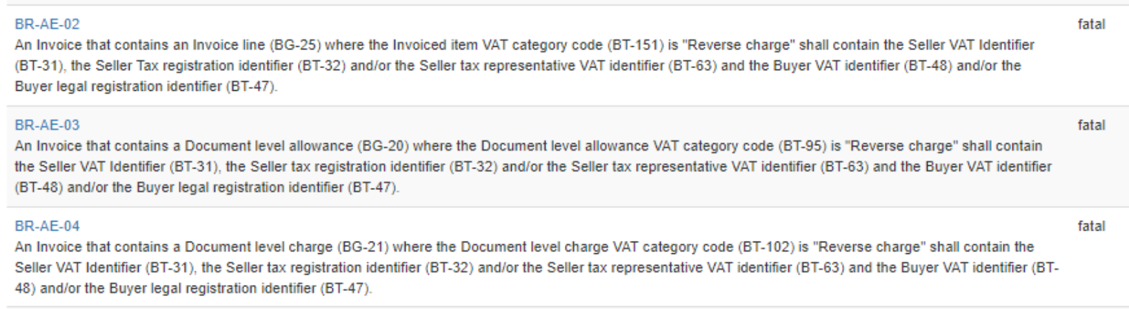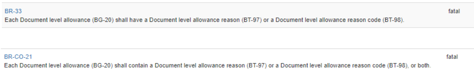 o VAT Exemption Reason Codes: VATEX-FR-FRANCHISE, VATEX-FR-CNWVAT (France domestic VAT franchise in base and France domestic Credit Notes without VAT, due to supplier forfeit of VAT for discount)