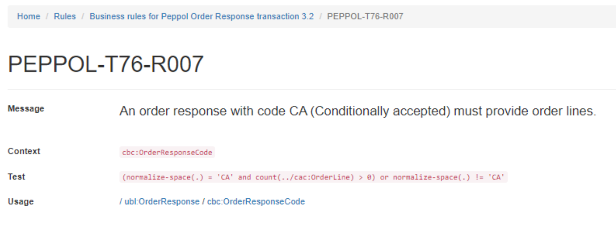 o The element cac:TransactionConditions/cbc:ActionCode on item-level is used.