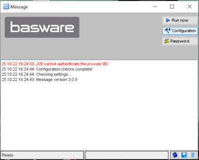 Aufgrund des zuletzt erfolgten Java-Updates: Java 8 Update 351, generiert Basware message die folgende Fehlermeldung: "JCE cannot authenticate the provider BC".