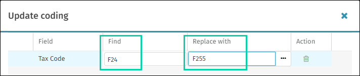 To update Tax Code, select multiple Spend Plans from the list view, use the Update coding action, select Tax Code field, replace the old code with the new code (for example, 24% code with the 25.5% code).