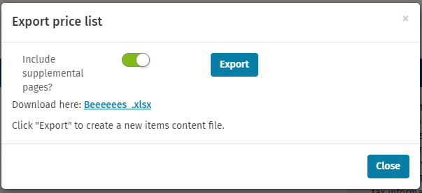 After a short time the file will be generated (you can navigate away from this page and the export will continue to generate), click the price list name to download the file: