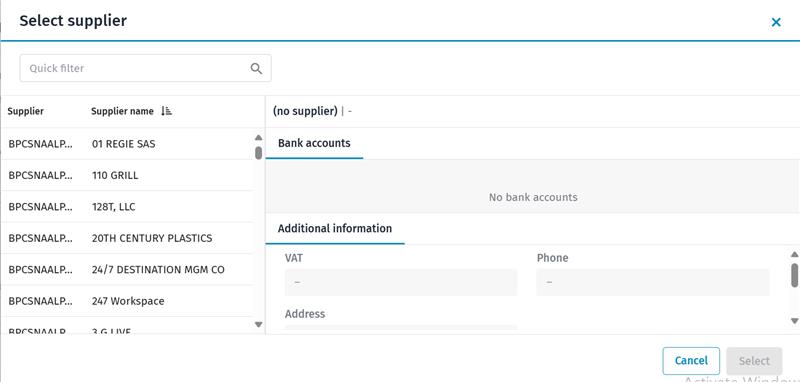Even when typing in a name in the quick filter, no suppliers will pull in.