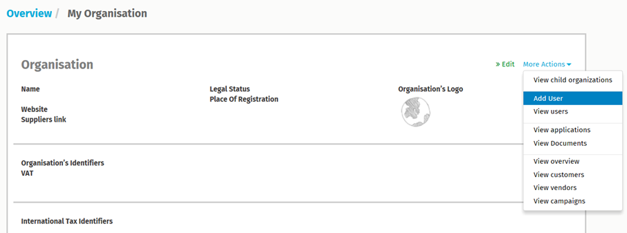 Company administrator users can add users to their organization through the My Organization page. The users that are added can access only the information and the business documents of the organization that they were added to, and all subsidiaries of that organization.