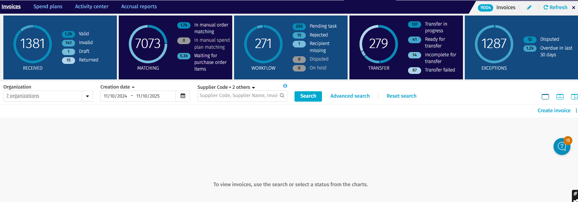 2. You will see a new window pop up on the screen where you can select all statuses of the invoices and choose the creation date and click on search.