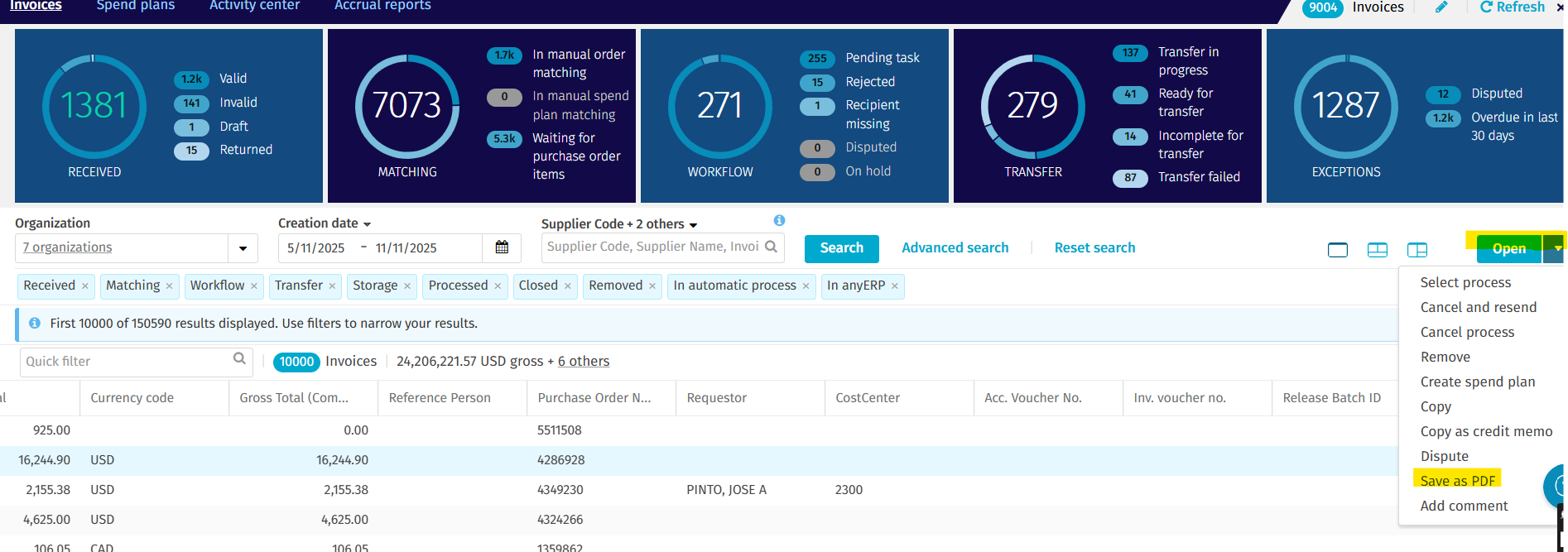 3. You will see all the invoices, and by using the Ctrl + A button, all the invoices will be selected.