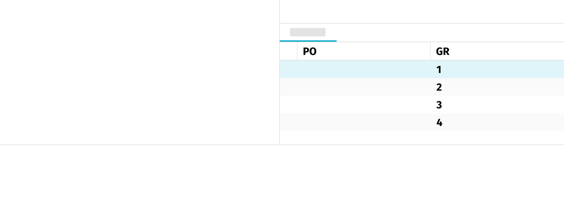 In Basware AP Automation manual matching and purchase order (PO) item search, you see the information based on your matching configuration and purchase order parameters. The PO parameters affect how goods receipts (GR) are generated and what items are shown in the PO item search at the main level or as sub-items.