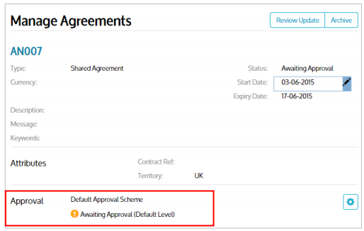 NOTE: You are unable to view or change the Approval Scheme if the Agreement is ‘Awaiting Approval’. You will clearly see the status of the Agreement as shown below: