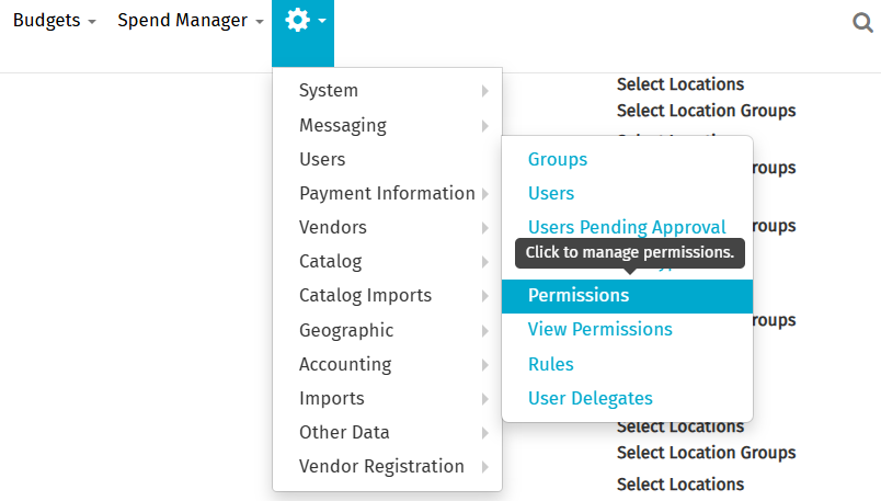 - Navigate to admin wheel > users > Permissions