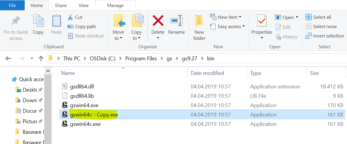 - Basware Message needs the file gswin32c.exe to be started.You will find only a gswin64c.exe file in the folder.