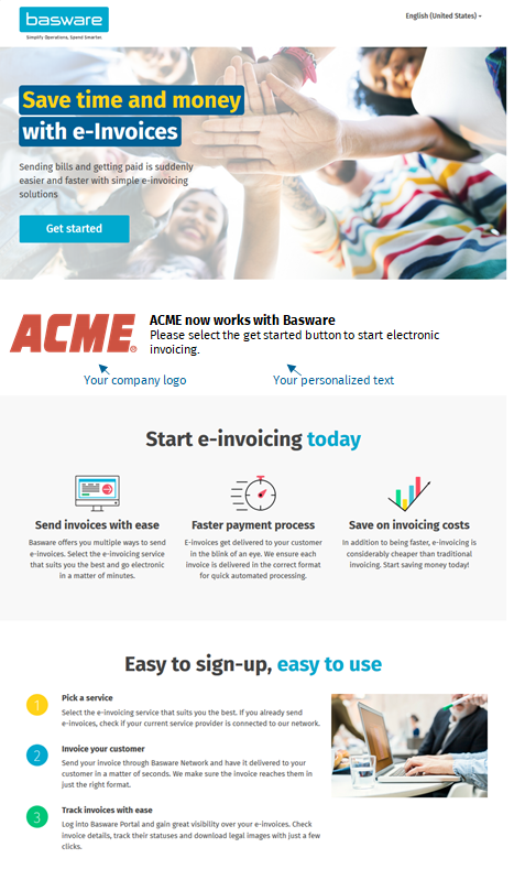 By asking your suppliers to start sending their invoices electronically, you will improve internal efficiency. You will also provide your suppliers with several benefits (free sending options, faster invoice processing) associated with sending invoices through the Basware Network.
