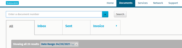 A: When you log in to Basware Network, you see a list of all the business documents that your company has received, and that you have sent to your business partners. If you are looking for a specific document, you can use search to limit the number of search results.