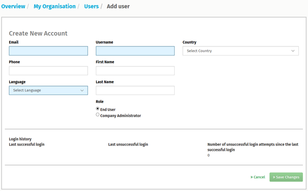 A: Company administrator users can add new users to their organization through the My Organization page. The users that are added can access only the information and the business documents of the organization that they were added to, and all subsidiaries of that organization.