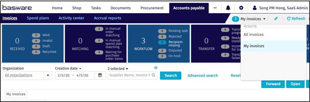 - Searching for invoices assigned to me: